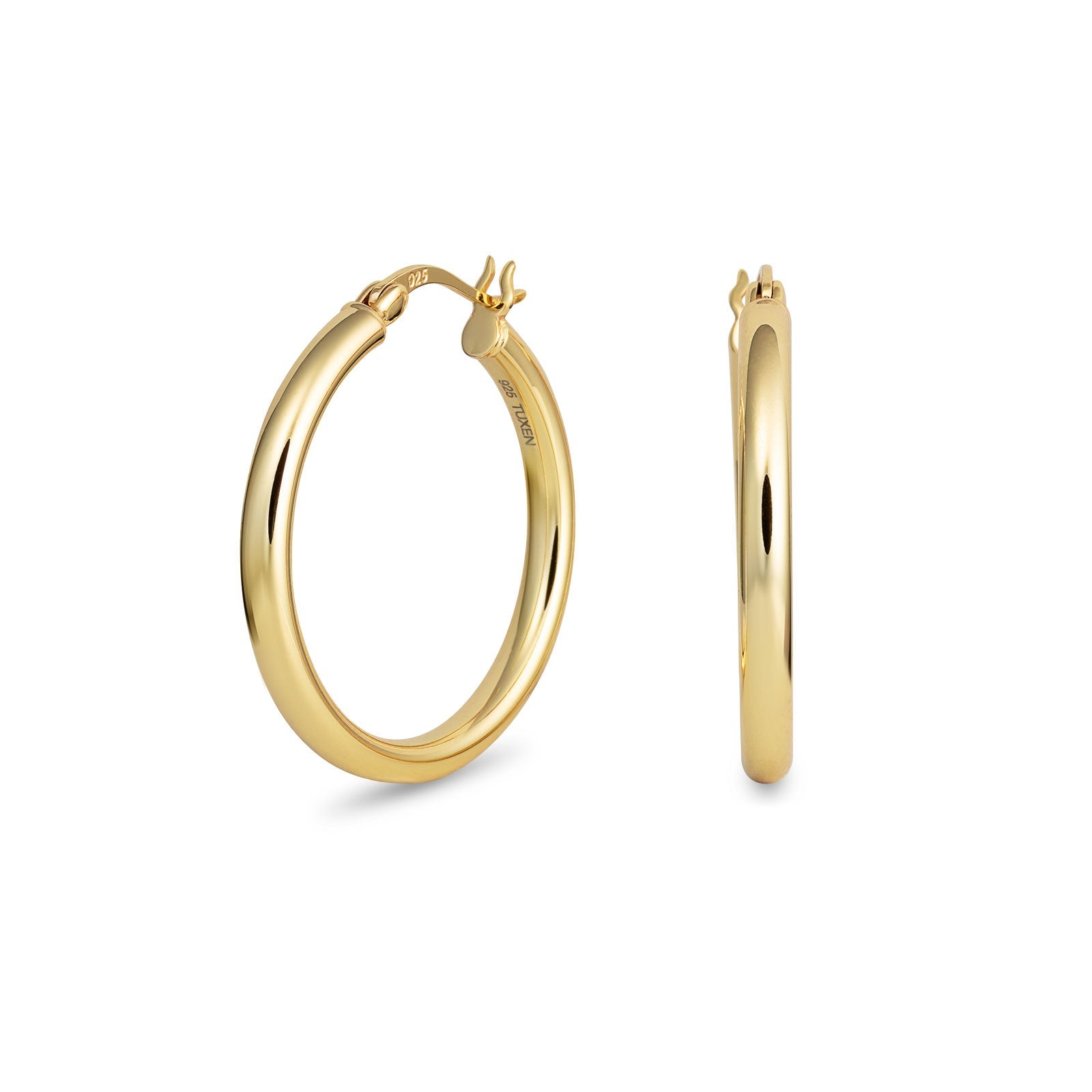 Skab et stilfuldt hverdagslook med disse klassiske og tidløse hoops. Øreringene har den perfekte størrelse til daglig brug og tilføjer et elegant touch til ethvert outfit. Deres enkle design gør dem nemme at kombinere med dine andre favoritsmykker – et must-have i smykkesamlingen.