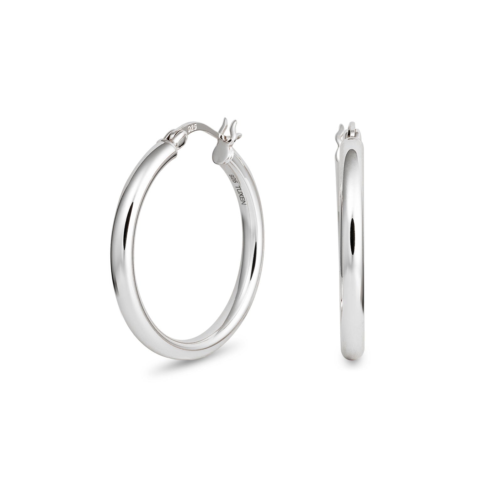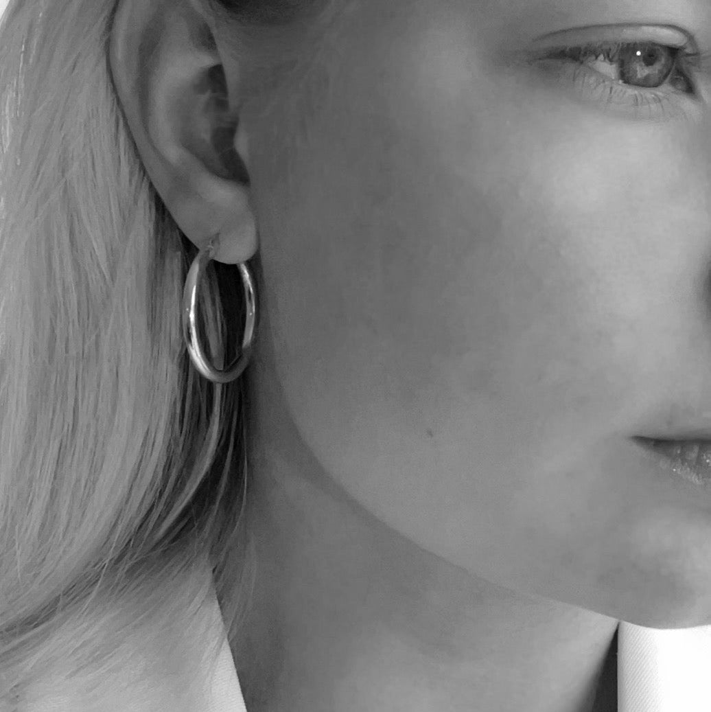 Skab et stilfuldt hverdagslook med disse klassiske og tidløse hoops. Øreringene har den perfekte størrelse til daglig brug og tilføjer et elegant touch til ethvert outfit. Deres enkle design gør dem nemme at kombinere med dine andre favoritsmykker – et must-have i smykkesamlingen.