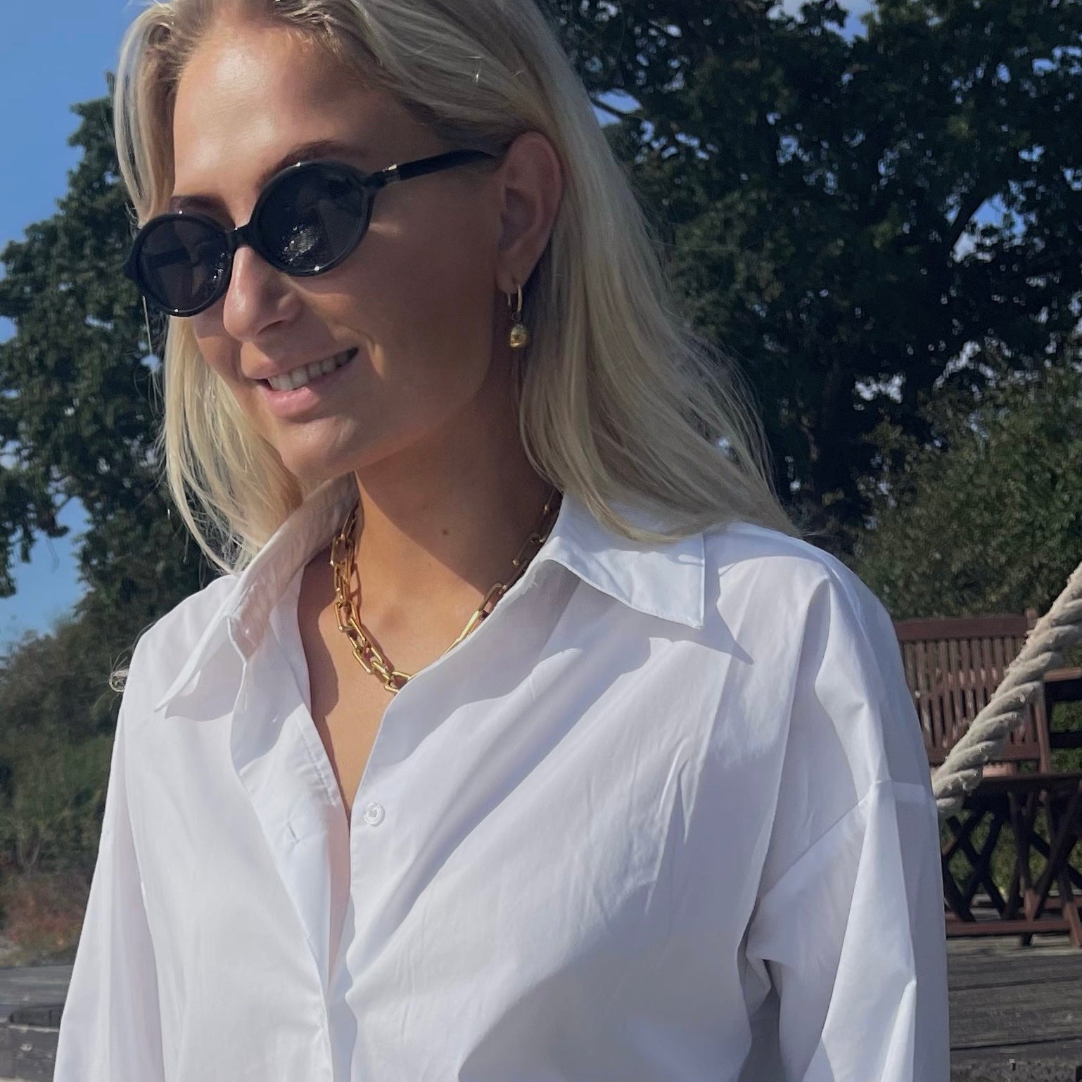 Nina øreringene er elegante, tynde hoops med en smuk kugle, der hænger og giver et unikt twist til det klassiske design. Deres enkle, men sofistikerede udtryk gør dem ideelle både til hverdagsbrug og festlige lejligheder. Perfekte alene for et stilrent look – eller sammen med andre smykker for at skabe et mere personligt udtryk.